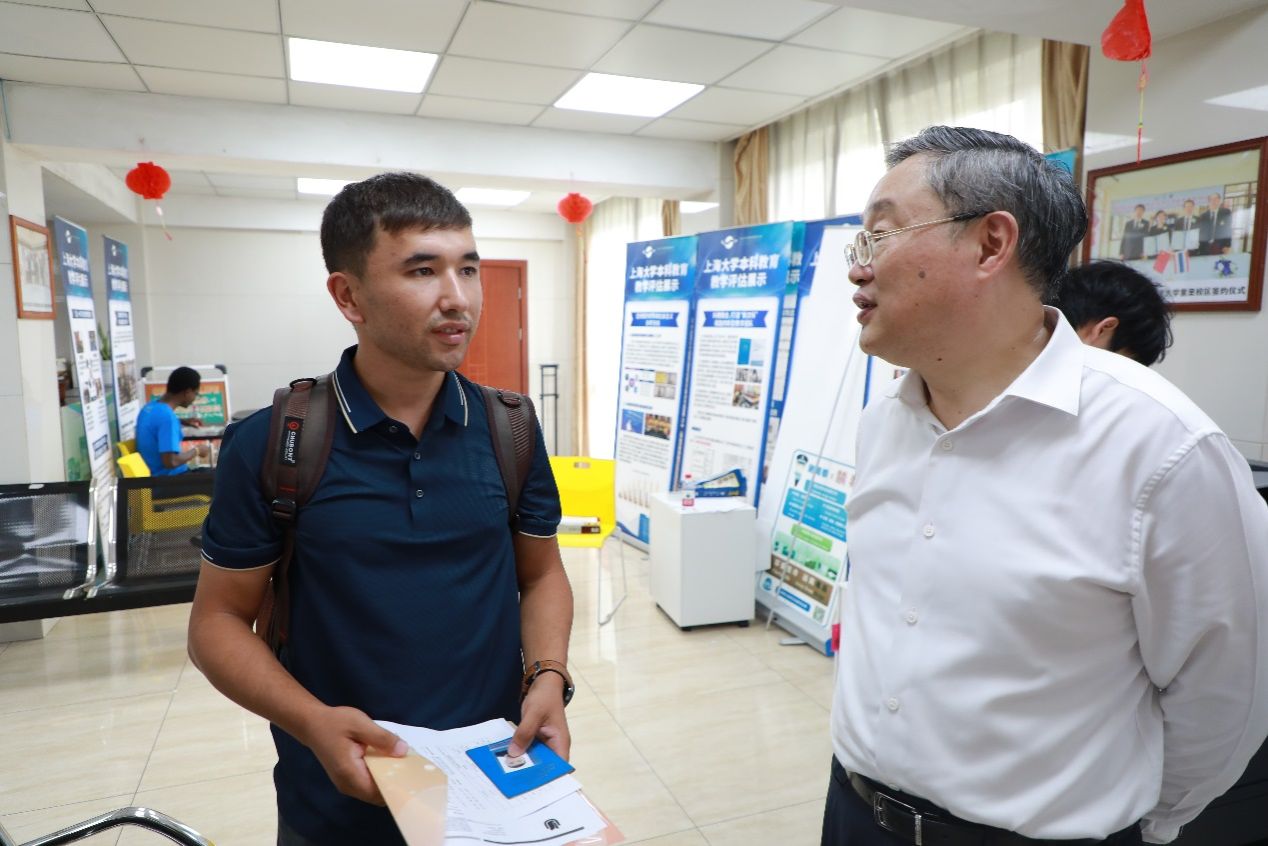 校党委书记成旦红走访国际学生报到现场,与国际新生亲切交流,并嘱咐国际教育学院做细、做好相关工作,帮助国际新生更好地适应在华学习和生活。