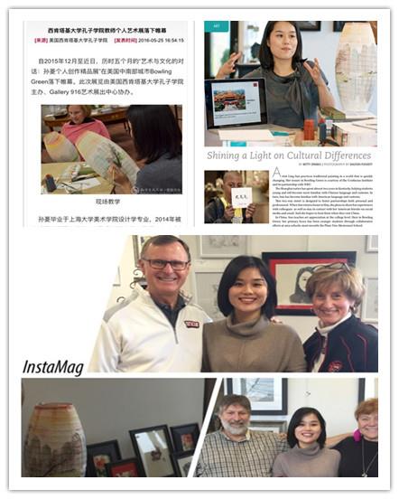 我校教师孙菱在汉办孔子学院赴美2年教学期间积极发挥个人艺术特长,在美国中部城市Bowling Green举办的艺术交流展成功落下帷幕。此次展览不仅受到当地媒体关注报道,受到孔子学院与国家汉办的一致好评,并于日前在汉办官方新闻中心发布。