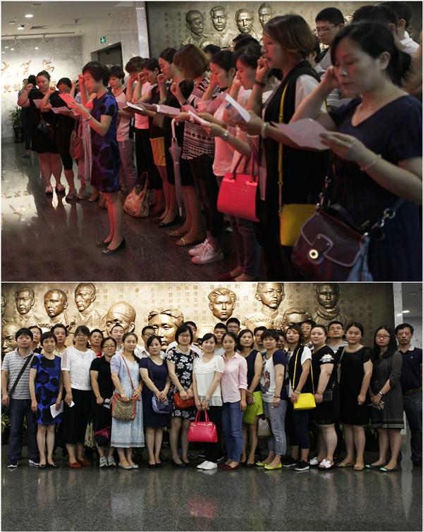 7月1日下午,我校近30名教职工预备党员在党委组织部组织员汤智佩的带领下,来到中共一大会址庄严宣誓,度过了一次难忘且意义深远的组织生活。