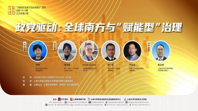 10月12日下午,政党驱动:全球南方与“赋能型”治理圆桌论坛在上海大学举办。本次论坛 由文汇报社-文汇讲堂与上海大学马克思主义学院、上海大学政党治理与社会发展研究中心联合主办。复旦大学国际关系与公共事务学院、上海国际问题研究院等多家单位和机构协办。来自复旦大学、同济大学、华东师范大学、上海大学、上海外国语大学、华东政法大学、上海中医药大学等高校和研究单位的青年学者以及本科、硕博士生等150余人参加论坛。圆桌论坛通过上观APP、央视频、上海大学视频号、文汇报视频号等同步直播,近18000人观看。