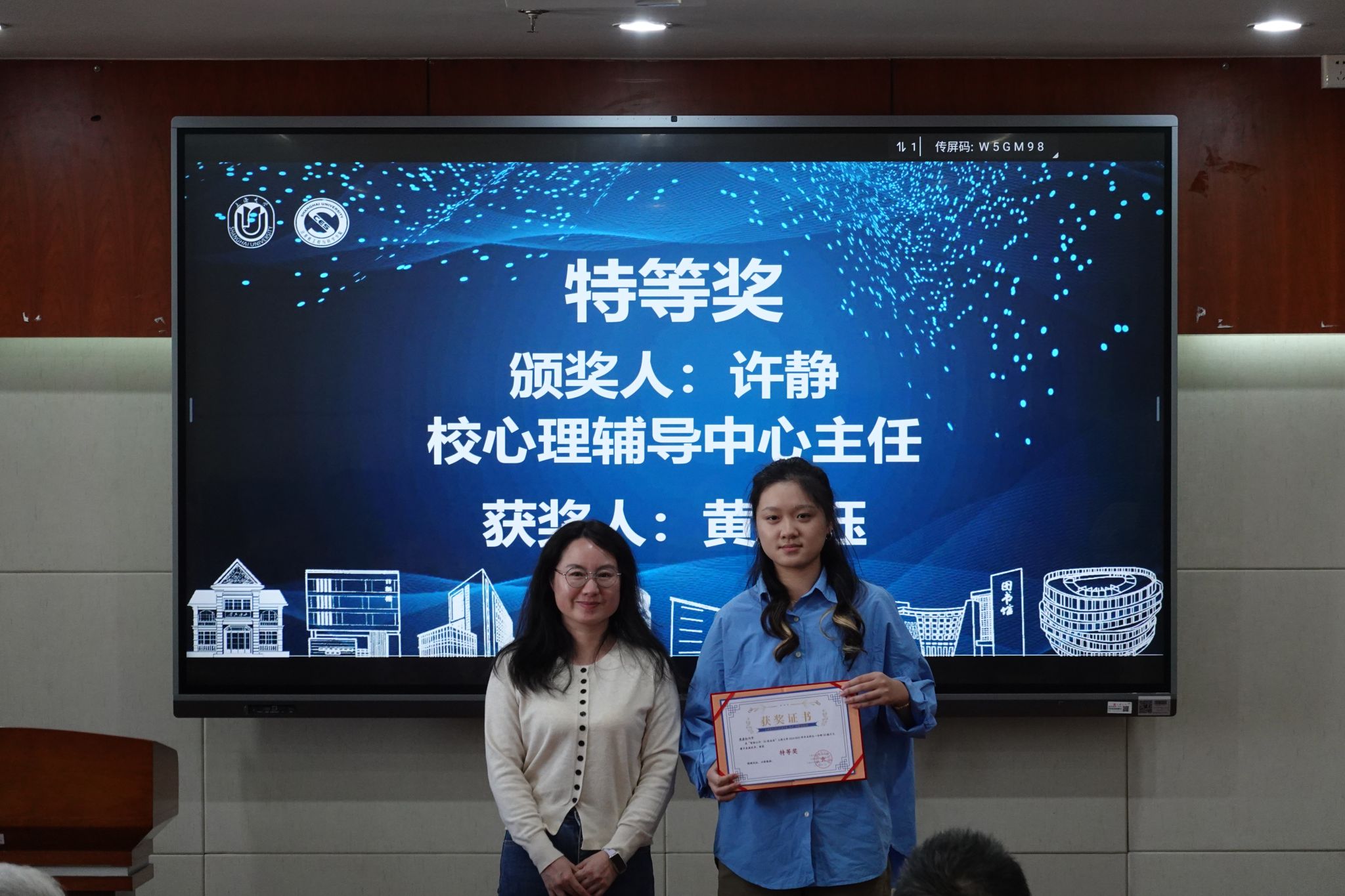 在随后的上海大学网络文化节颁奖环节中,上海大学心理辅导中心主任许静为特等奖获得者颁奖,学院副院长邹国兵、李晓强分别颁发一等奖和二等奖,表彰在校园网络文化建设中表现突出的同学。与会人员共同观看了获奖作品《隐形防线——科技赋能的国家安全教育课》。