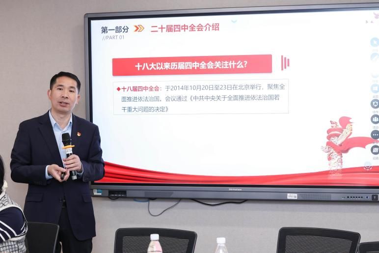 高校是党的创新理论学习、研究、宣传的关键枢纽和思政课教学改革创新的重要阵地。同济大学经管学院党委副书记、教育部金融类专业教指委委员阮青松教授指出,上海大学快速组织教师深入学习贯彻全会精神,有利于推动全会精神在课堂落地生根。他以《从资本市场看二十届四中全会公报》为题开展领学。阮老师围绕“从公报看未来五年重大政策预期”“公报中的科技内容亮点”“公报对中国资本市场的重大影响”以及“资本市场助力十五五规划的作用、战略地位及配套政策”等方面,结合鲜活的资本市场案例,生动解读了党的二十届四中全会公报最新要点与资本市场的紧密联系。