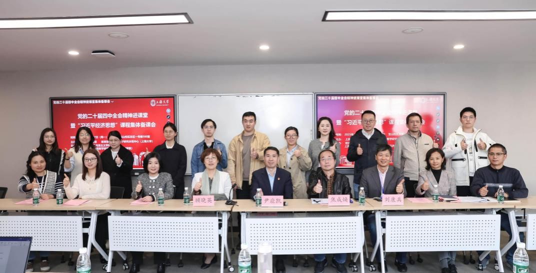 为深入贯彻学习党的二十届四中全会精神,推动广大教师将全会精神及时融入课堂教学,10月27日,党的二十届四中全会精神进课堂暨“习近平经济思想”课程集体备课会在上海大学召开。会议由上海大学教务部、教育部课程思政教学研究示范中心(上海大学)主办,经济学院、马克思主义学院、上海大学课程思政教学研究示范中心(经济学院)承办。同济大学经管学院党委副书记阮青松、经济学院党委书记尹应凯、经济学院副院长毛雁冰、经济学院副院长刘康兵、马克思主义学院副院长焦成焕、管理学院党委副书记马亮以及来自经济学院、马克思主义学院、管理学院、文化遗产与信息管理学院、国际教育学院、机自学院、文学院、教务部等20余名师生代表参会。上海大学教务部副部长、教育部课程思政教学研究示范中心负责人(上海大学)顾晓英主持会议。
