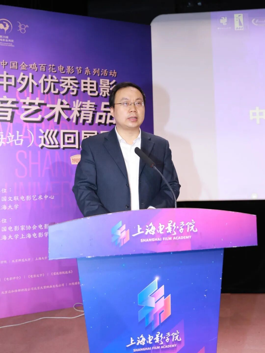 中国电影家协会电影声音艺术工作委员会会长姚国强代表声工委致谢,感谢中国文联、中国电影家协会、中国文联电影艺术中心和上海大学上海电影学院的大力支持。他表示,在金鸡百花电影节期间于上海大学上海电影学院举办巡回展影活动,意义重大、使命光荣。声工委自2013年成立以来,在电影声音创作、录音技术创新和学科建设等方面取得丰硕成果,推动了中国电影声音艺术的发展。本次活动将以最高学术水准和最开放姿态展示中外电影声音艺术魅力,成为中国电影声音事业的重要里程碑,让中国电影的声音更加自信和响亮。