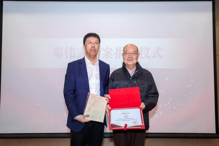 在与会人员的共同见证下,邓伟志教授将一批承载其学术生涯与人生轨迹的珍贵档案资料捐赠给上海大学,共计藏品1706件,代表性藏品194件。校党委书记吴坚勇代表学校接受捐赠,并向邓伟志教授颁发了捐赠证书,对其无私捐赠表示衷心感谢。