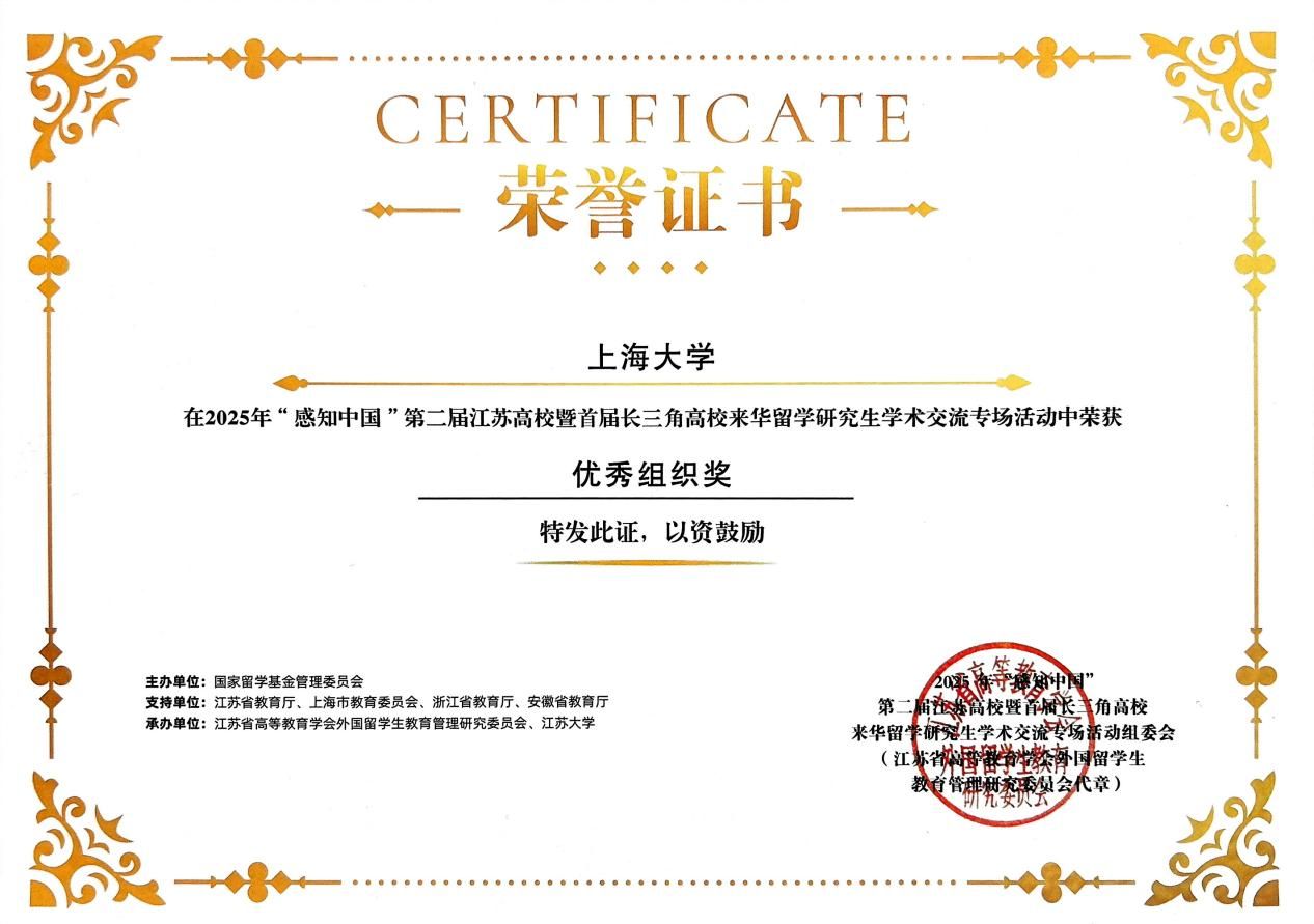 此次优异成绩的取得,离不开国际教育学院和各专业学院的高效联动。这一协同育人、合力托举的培养模式,为国际研究生提供了坚实的学术支持与发展平台,也助力学校荣获“优秀组织奖”。