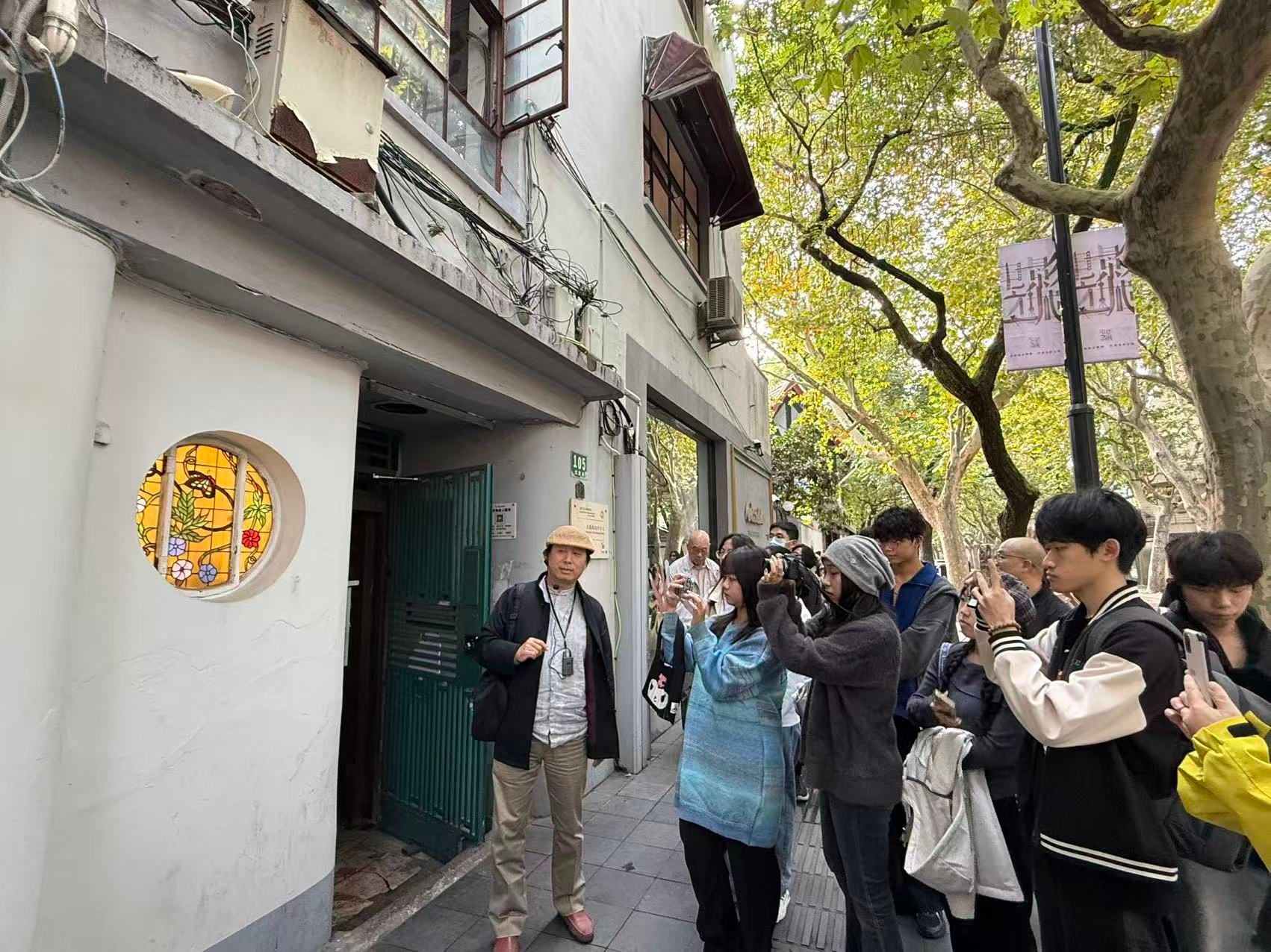师生一行从宝山校区出发,首站抵达武康路历史文化街区。在上海市“建筑可阅读”宣传大使周培元教授的带领下,同学们漫步于梧桐掩映的武康路,依次探访了武康大楼、意大利驻沪领事馆旧址、黄兴旧居等多处历史建筑。周教授结合建筑风格与历史背景,生动讲述了上海百年来的开放历程与文化融合,引导学生们在行走中读懂城市、理解历史。
