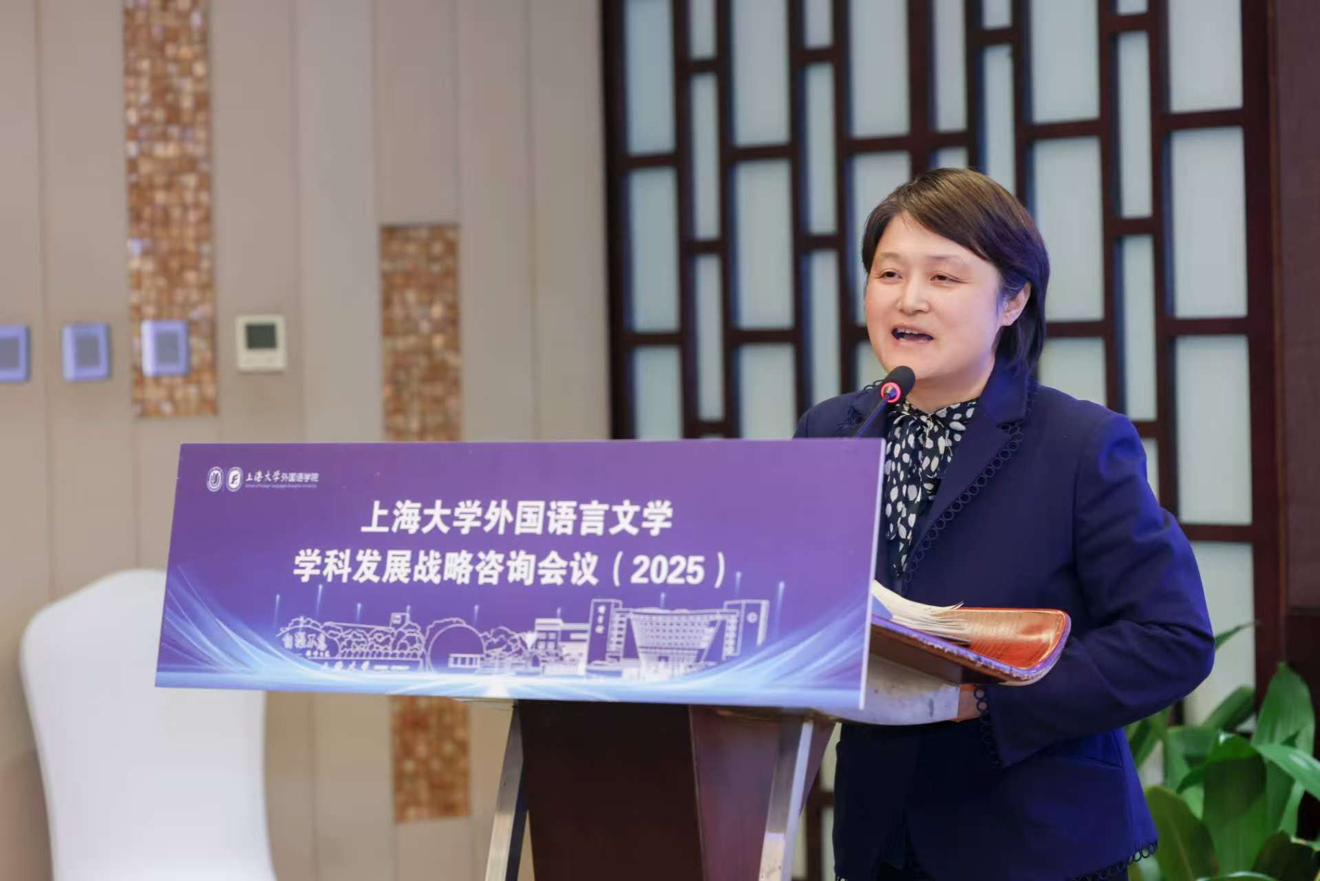 上海大学外国语学院党委书记吴蔚代表学院向与会专家表示衷心感谢,并表示未来学院将以内涵建设为核心,构建“宏观规划—中观聚焦—微观落地”的一体化推进体系,找准发展定位,服务战略需求,科学规划整体布局,稳步推进各项工作,聚力实现更高质量的发展。