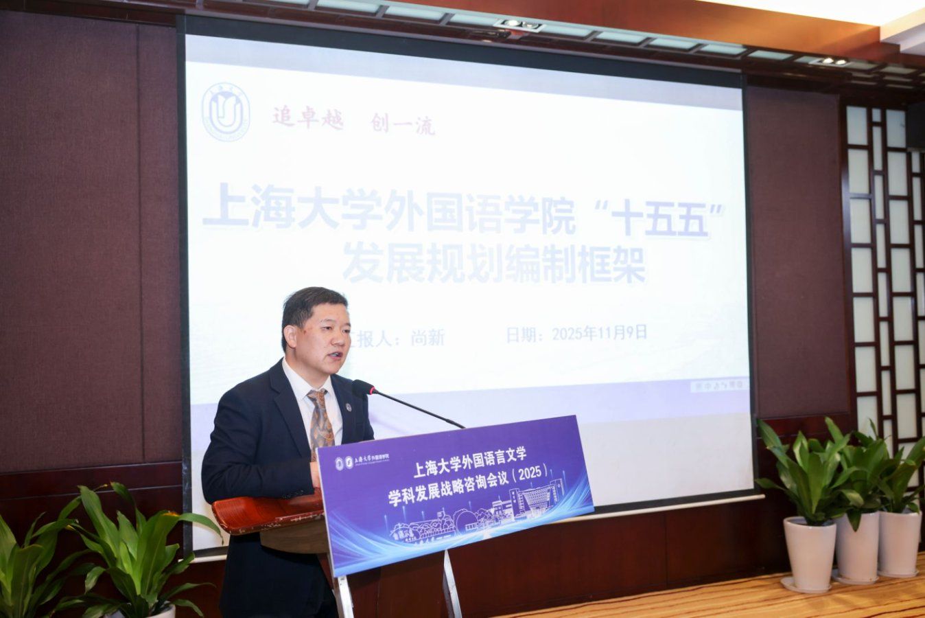 随后,上海大学外国语学院院长尚新做“上海大学外国语言文学学科‘十五五’发展规划报告”,向与会专家汇报了学院“十四五”时期取得的亮点与成果,深入剖析了问题与挑战,并围绕学院发展规划框架汇报了“十五五”规划的思路及设想,旨在征求专家意见,科学谋划学科发展路径,明确学院发展方向。