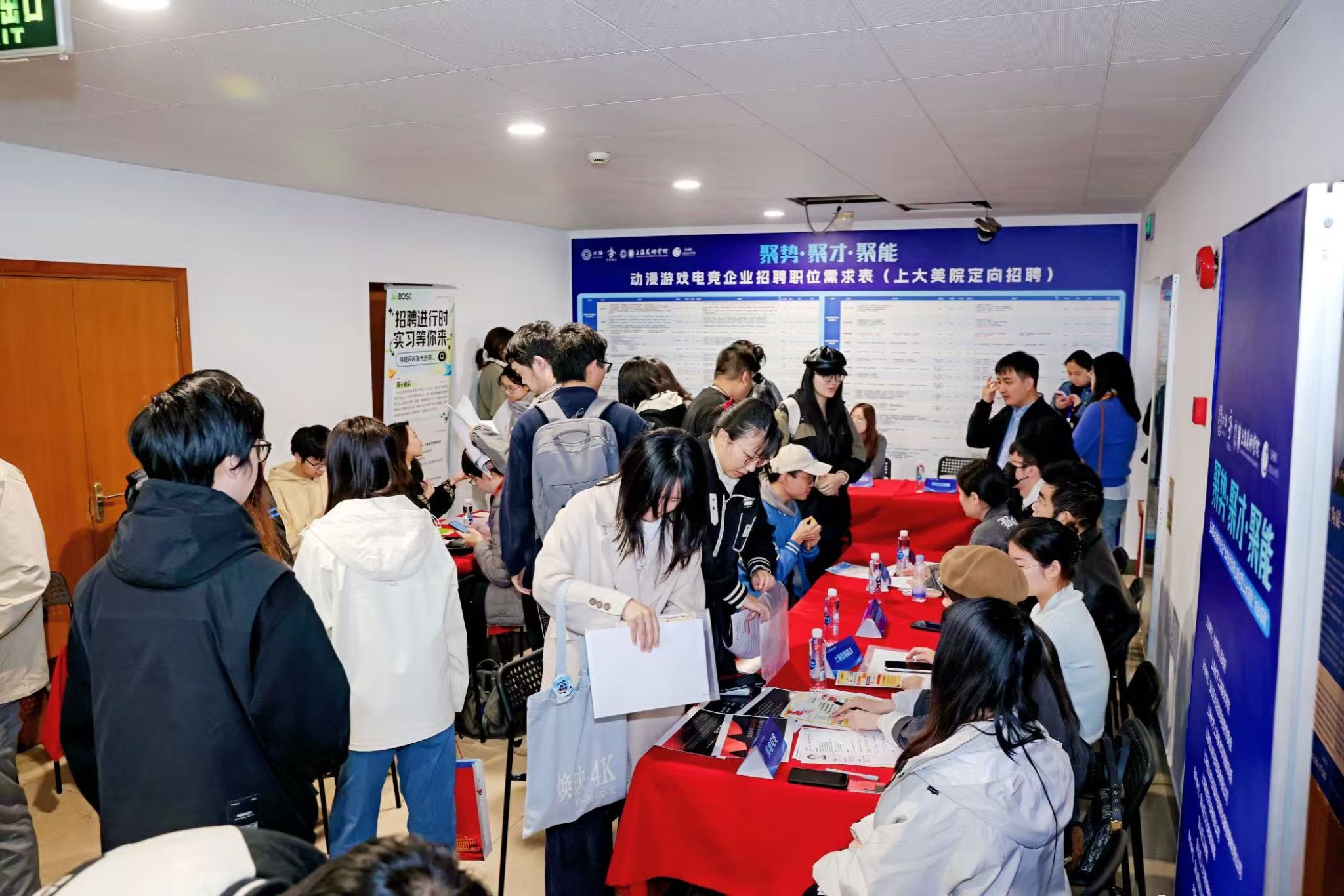 本次活动延续今年8月宝山区动漫游戏电竞产业上海美院产学研基地揭牌后的合作成果,再次聚焦产业链、创新链与人才链的深度融合。活动现场设置数字艺术展示、政策咨询、人才招聘、项目对接等多个功能专区,吸引宝山区内数十家动漫游戏电竞企业与上海美术学院百余名学生面对面交流。多家企业现场发布实习与就业岗位,超过20名中外学生当日与企业初步达成合作意向。