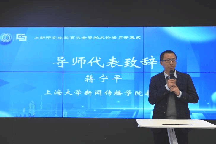 上海大学新闻传播学院教授蒋宁平作为导师代表分享了四个建议:一是鼓励多读书,尤其是学科经典,以增强知识基础;二是提倡大胆质疑,勇于挑战权威与现有理论,促进知识创新;三是强调了解和体验中国当代社会的重要性,寻找研究灵感;四是建议选择具体事情深入研究,以获得切身体悟,指导正确决策。这些建议旨在帮助研究生在学术道路上取得进步,培养批判性思维和实践能力。
