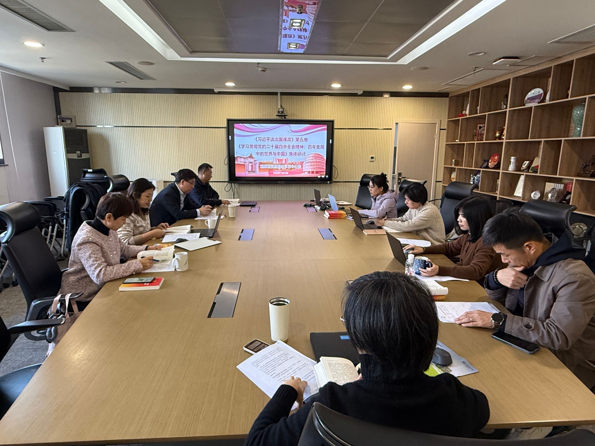 11月19日下午,国际部党委组织《习近平谈治国理政》第五卷专题学习。国际部领导班子成员及全体党员参加学习,国际部党委书记王丽娜主持。
