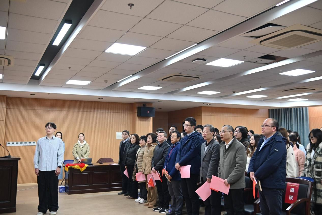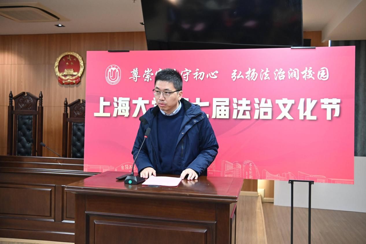 为深入学习贯彻习近平法治思想与党的二十大、二十届四中全会精神,扎实落实习近平总书记关于加强法治宣传教育的重要指示要求,持续提升全校师生的法治意识与道德素养,凝聚法治校园建设共识,为学校“双一流”建设注入新活力,2025年12月4日——第12个国家宪法日当天,由法学院(秋白书院)、校党政办、党委宣传部、学生工作办公室、党委研究生工作部、校团委、校工会等联合主办的上海大学第七届法治文化节开幕式,在宝山校区法学院113模拟法庭举行。本届文化节紧扣宪法主题,以“尊崇宪法守初心,弘扬法治润校园”为核心,将陆续推出宪法日普法活动、求职就业法律宣讲、“法言杯”辩论赛、模拟法庭观摩、反诈骗宣讲等系列特色活动。