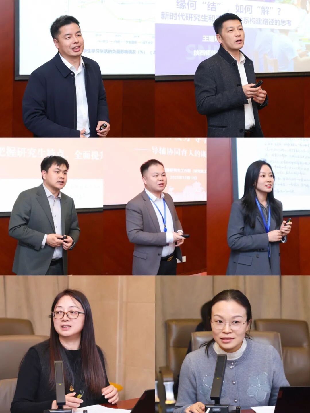 教育部高校思想政治工作创新中心(武汉大学)副主任、教育部高校思想政治工作中青年骨干司文超,陕西师范大学计划财务处处长、2025年度全国教育科学规划学科建设与研究生培养研究专项项目负责人王耀明,中国人民大学党委研究生工作部副部长、马克思主义学院副教授兰洋,湖南大学党委研究生工作部副部长王安琪,复旦大学国际文化交流学院党委副书记李洁,苏州大学党委学生工作部副部长、大学生心理健康教育研究中心主任黎春虹,中国科学技术大学党委学生工作部、研究生思政教育办公室主任刘珣等多位专家与老师,就网络育人、导学关系构建、思政引领力提升、导辅协同育人、研究生心理健康守护与支持体系构建等主题分享观点与实践经验。