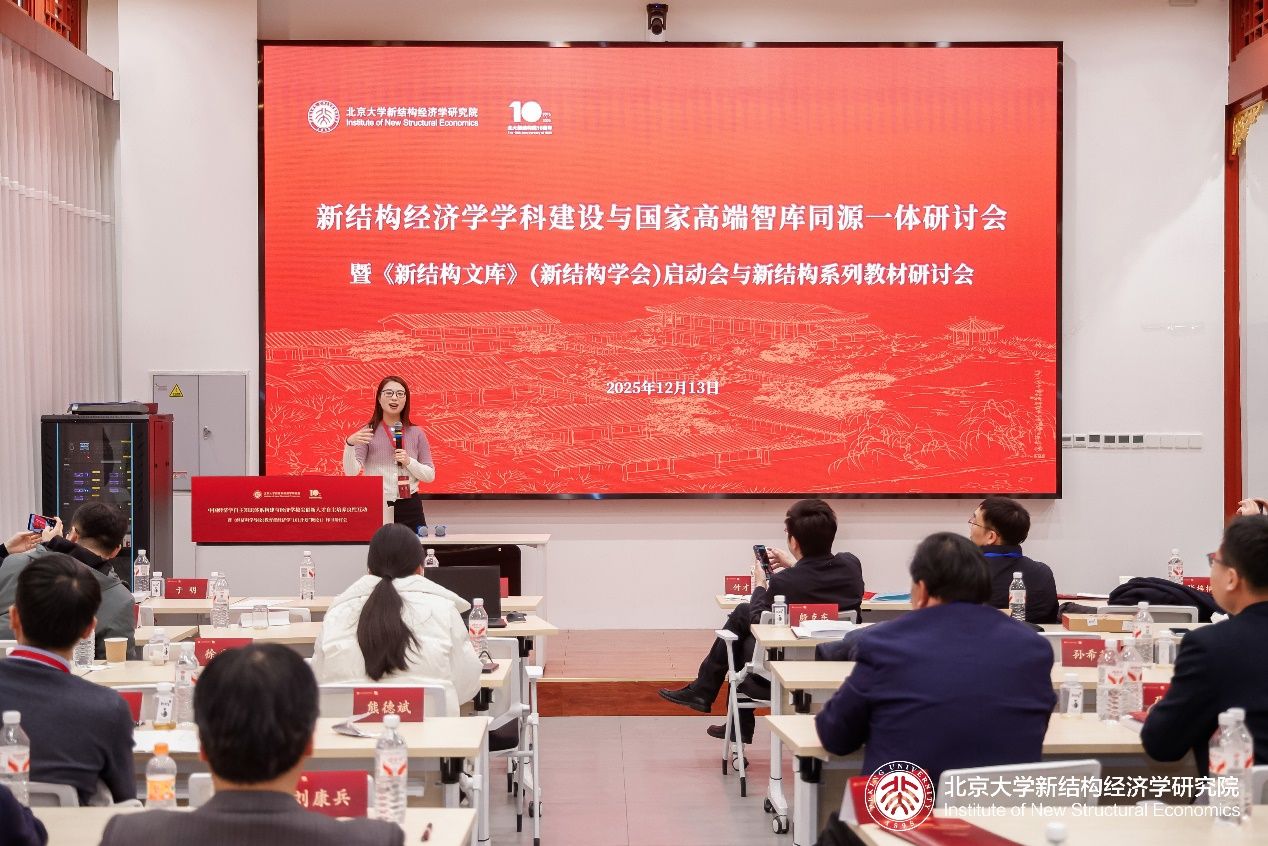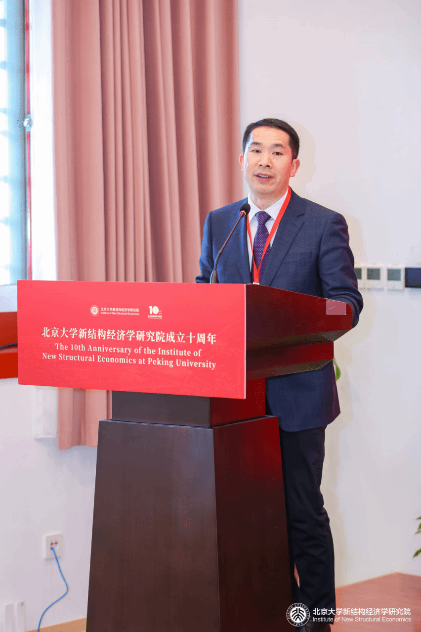 在新结构经济学研究院成立十周年大会上,上海大学经济学院党委书记、新结构经济学研究院副院长兼秘书长尹应凯分享了我校在新结构经济学领域的实践与成就。尹应凯围绕“新结构经济学为什么能”展开阐述,指出新结构经济学作为中国自主经济学知识体系的重要组成部分,于2025年入选“中国哲学社会科学领域十大原创理论”,兼具学术价值与社会意义。他从“天时地利人和”与“顶天立地强中”两个层面分析了该理论的发展动力,并介绍上海大学以“根和魂有机统一、明暗线齐头并进”推动新结构经济学学科建设的实践。研究院将新结构经济学深度融入人才培养、科学研究与服务社会,通过新结构经济学“五进”举措与“点线面体”科研模式,践行“知成一体”理念。研究院成立6年来,学科建设成效明显,部分本科生直博北京大学,师生团队在新结构数字经济学、环境经济学、新结构金融学等领域产出一系列研究成果。他以“适合的就是最好的”总结新结构经济学的学习研究体会,强调该理论从“物质第一性”原理即“要素禀赋结构”切入因而具有更大的普适性。最后,他祝愿北京大学新结构经济学研究院开启下一个成色更足的黄金十年。