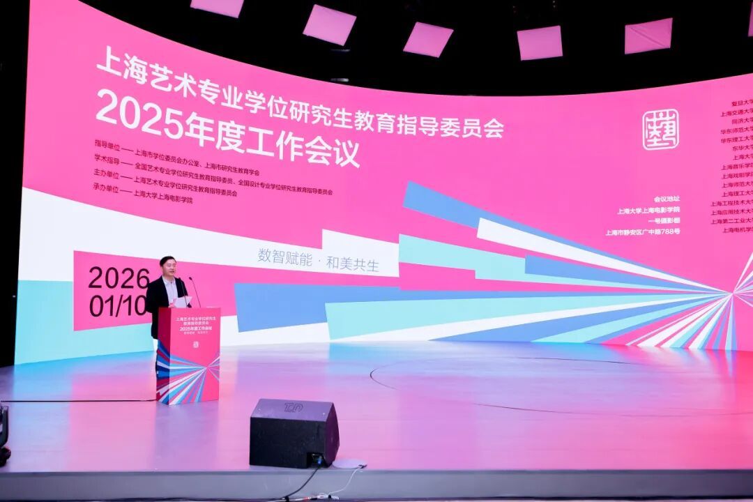 2026年1月10日,上海艺术专业学位研究生教育指导委员会(以下简称“上海艺指委”)年度工作会议在上海大学举行。会议由上海大学电影学院承办,主会场设在上海大学上海电影学院一号摄影棚(上海静安区广中路788号)。