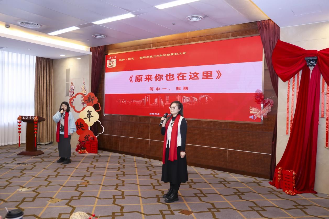由上海大学新结构经济学实验班学生代表带来的合唱《相亲相爱的一家人》,悠扬和声凝聚着经院人的同心之力,从课堂研学的朝夕相伴到科研攻关的并肩作战,从校园求索到职场闯荡,因经院相聚、为梦想同行的我们,早已是心手相牵的相亲相爱的一家人。
