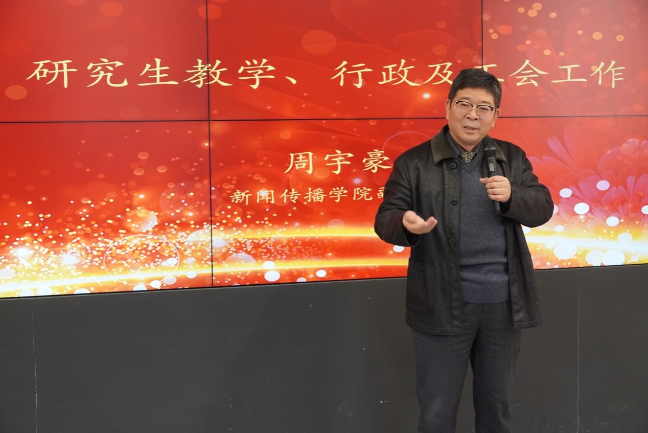 副院长周宇豪从研究生招生和培养质量、拓展学院资源、强化行政服务、凝练工会品牌活动等方面部署了研究生教学、行政及工会的重点工作。