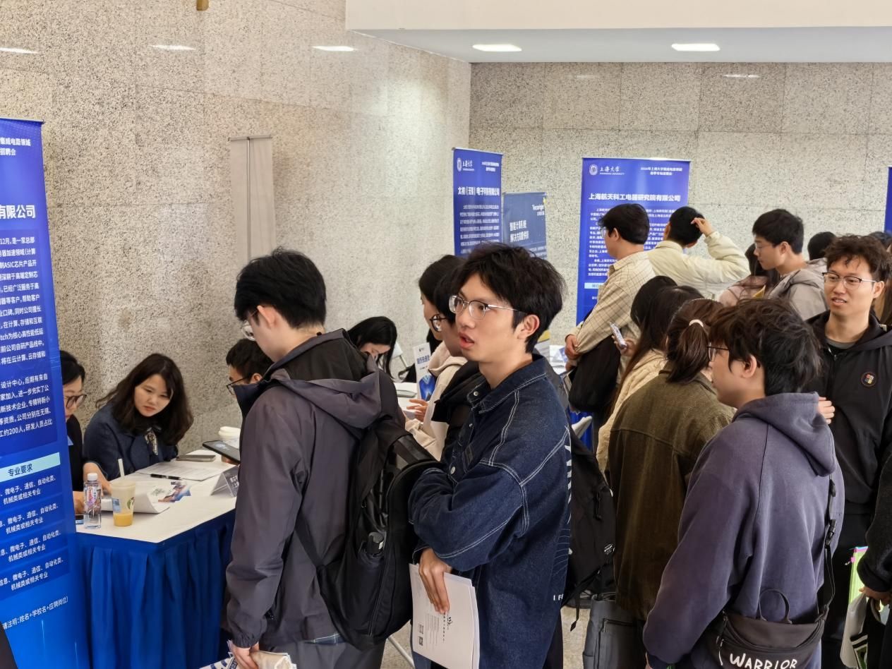 3月27日,上海大学2026年集成电路领域春季专场招聘会在宝山校区图书馆报告厅圆满举行。本次招聘会由上海市教育委员会、上海市经济和信息化委员会指导,上海大学主办,上海集成电路行业产教融合就业育人联盟、上海大学“1+3+N”集成电路协同育人联盟、上海大学集成电路行业校友会联合承办,微电子学院(上海微电子产业学院、溯微书院)牵头,联合通信与信息工程学院、机电工程与自动化学院、材料科学与工程学院、卓越工程师学院、理学院、力学与工程科学学院等多学院共同协办,得到了上海市集成电路行业协会、嘉定区经济委员会、宝山区科学委员会、临港新片区党群工作部、临港新片区人才发展服务中心、临港集成电路产业集群党委、上海市学生事务中心等数十家单位的大力支持。活动以全面落实就业优先战略、深化产教融合协同育人为核心,精准对接国家集成电路产业发展战略与上海产业布局需求,为高校毕业生与集成电路企业搭建了高效精准的供需对接平台,为产业高质量发展注入青春人才动能。
