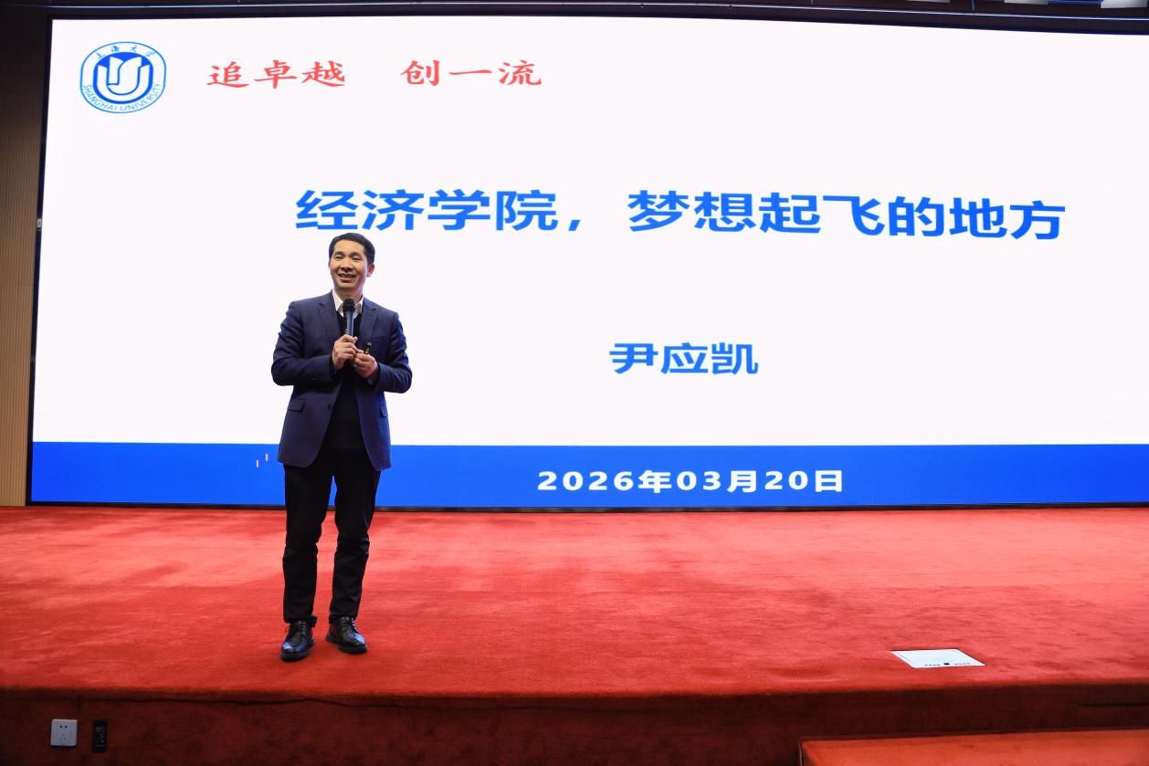 尹应凯首先围绕经济学学科特色与经济学院整体情况进行介绍。他从经济学学科的时代价值、发展趋势切入,用五个“最经济”详细介绍了经济学院的学科布局、人才培养体系、师资力量、国际化办学方向和人文底蕴,让同学们对经济学学科的特点和经济学院的人才培养目标有了全面认识。他引用钱伟长校长的话——“祖国的需要,就是我的专业”激励同学们勇敢追梦,成长成才,并指出“学生成长,就是每位经院人的专业”。