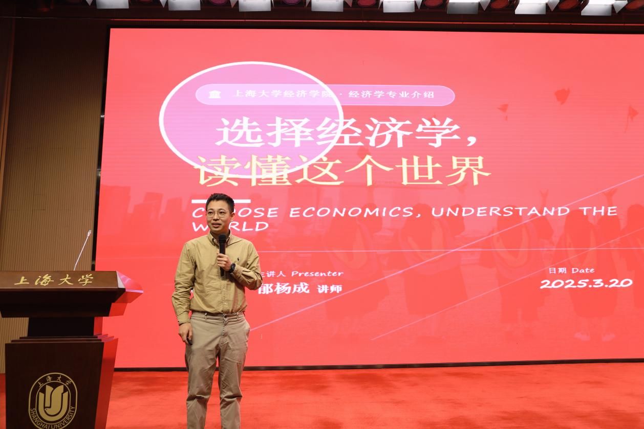接着,经济学、国际经济与贸易、金融学三个专业的青年教师代表依次进行专业介绍。郁杨成聚焦经济学专业的整体发展前景,围绕当前经济社会发展趋势与行业人才需求,重点介绍了经济学专业的核心课程体系和多维能力培养模式,分析了经济学专业的广阔发展空间,解读了“经济学给你理解世界的框架,也给你改变世界的底气”。