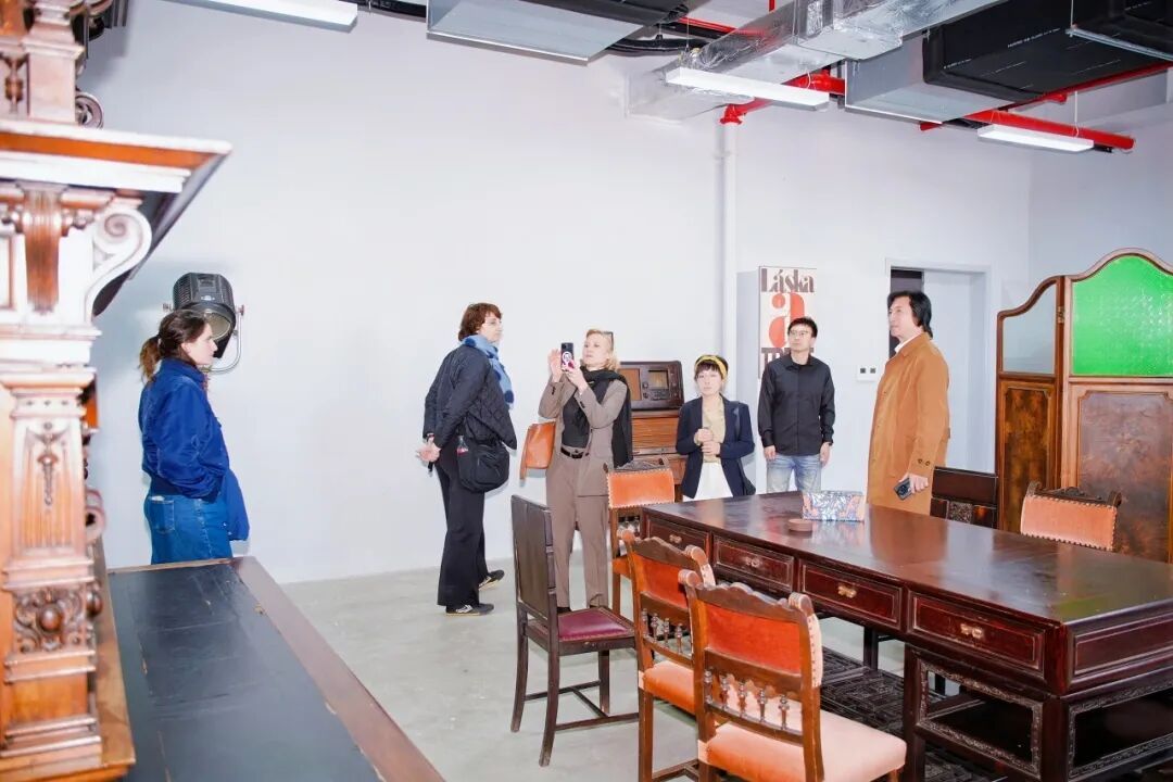 唐莉安女士与法国影视联盟的其他工作人员,在何小青院长、马可穆勒教授的陪同引导下,实地参观了上海电影学院新大楼,先后走访体验虚拟拍摄棚、标准放映厅、静音自习室、归国影人基地等功能区域,切身感受学院一流的教学硬件设施与专业办学条件。