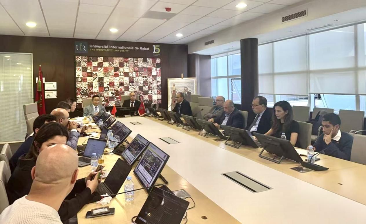 拉巴特国际大学(Université Internationale de Rabat, UIR)是摩洛哥高等教育体系中最具有国际化办学特色的综合性高校之一。在拉巴特国际大学,代表团与副校长Abdelaziz Benjouad及健康科学学院、管理学院、工程与建筑学院、国际合作关系部等部门负责人一行进行了会谈,就师生交流、研究生联合培养以及健康科学、数字与信息技术等相关学科的科研协作进行了深入交流与讨论,并就签订合作备忘录达成意向。