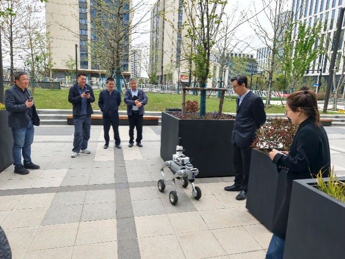 上午,周广飞副主任一行先后走访海洋智能无人集群技术与系统教育部重点实验室、上大通用智能机器人研究院。围绕精海海洋智能,评估中心专家团队详细了解无人艇集群、自动化控制、智能感知、水环境巡航执法等关键技术与应用成效,对平台在流域巡查、应急监测、非现场环境管理等场景的示范应用给予高度评价。在上大通用智能机器人研究院,调研团实地察看机器狗等智能装备平台的研发进展,探讨了具身智能的“大脑”等关键部分的研发,深入交流其在复杂环境巡检、隐蔽污染源排查、非现场执法中的技术优势,充分肯定我校在智能装备与环境监管融合创新方面的领先探索。