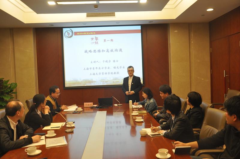 4月29日上午,直属单位青联会在校本部乐乎新楼海纳厅举行第一期青馨沙龙活动。上海市青年东方学者、曙光学者、上海大学管理学院教授于晓宇博士以《战略思维和高效沟通》为主题与直属单位青年教师互动交流。校党委组织部副部长张洁、直属单位党委书记陈志宏全程参与了沙龙活动。青馨沙龙得到了乐乎楼集团的鼎力支持。