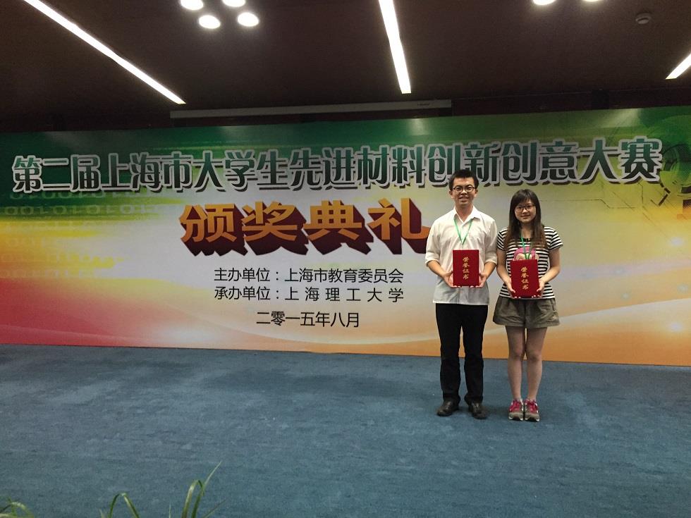 2015年8月29日,第二届上海市大学生先进材料创新创意大赛在上海理工大学体育馆落下帷幕。上海大学材料学院学生王晓与吴俊玮同学组成的参赛队以项目《新型耐磨金属基复合材料》获得二等奖,学生瞿芮的科研项目《可聚合有机强酸/硫酸复合固化剂及其酚醛泡沫》获得优胜奖。