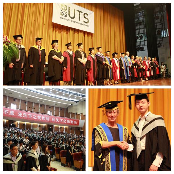 7月3日下午,上海大学悉尼工商学院与澳大利亚悉尼科技大学合作培养2014届中澳双学位毕业典礼在宝山校区大礼堂隆重举行。悉尼科技大学名誉校长Vicki Sara、悉尼科技大学校长Ross Milbourne、悉尼科技大学常务副校长Peter Booth、悉尼科技大学副校长William Purcell、悉尼科技大学教务长Mr John Hartigan、悉尼科技大学商学院院长Roy Green、悉尼工商学院院长龚思怡等出席毕业典礼。